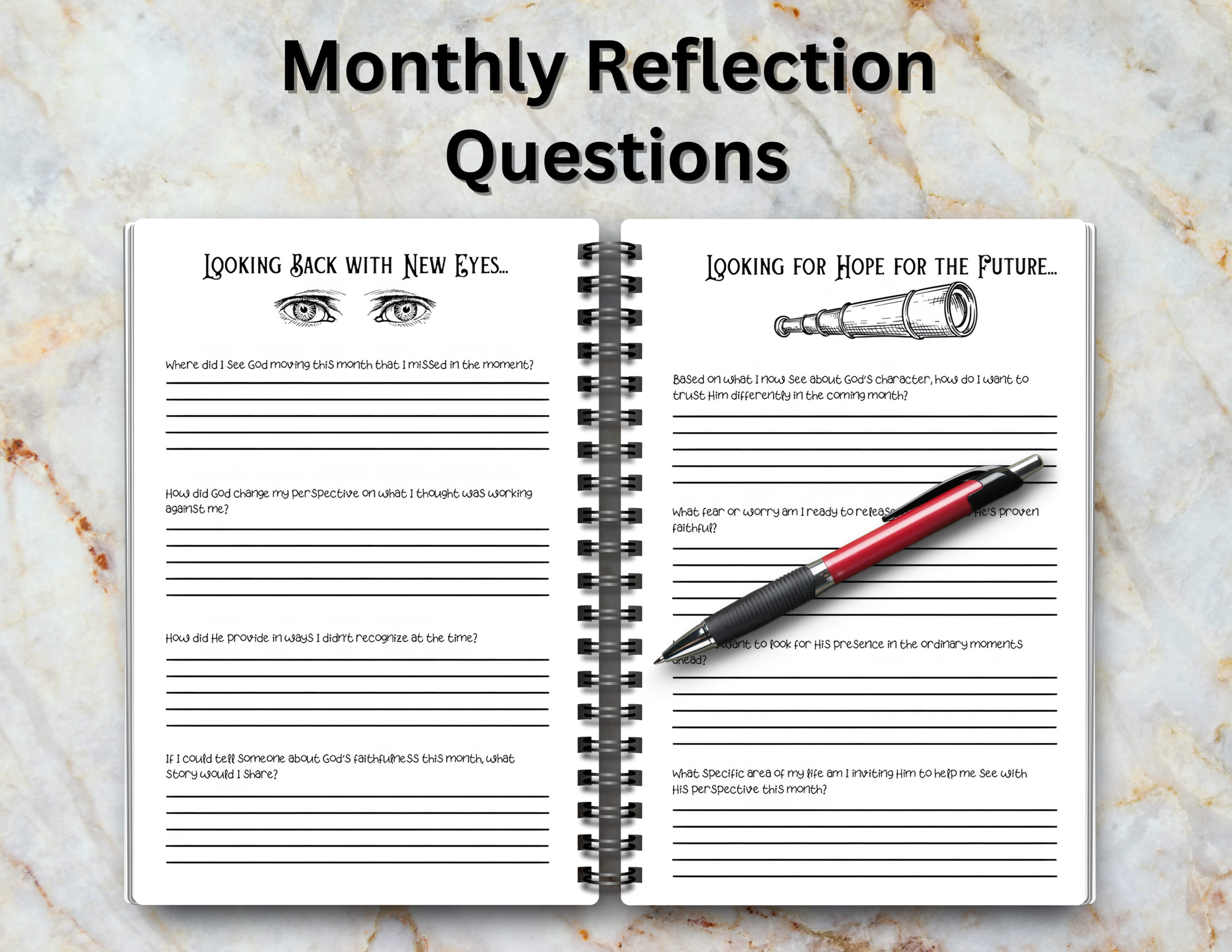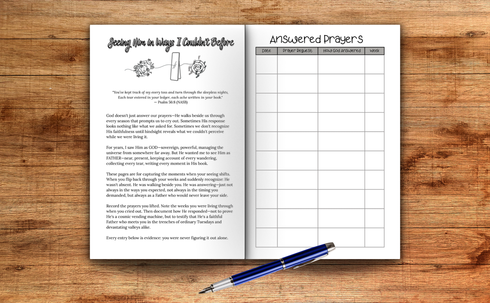 - Answered Prayer Log to record God’s faithfulness throughout the year