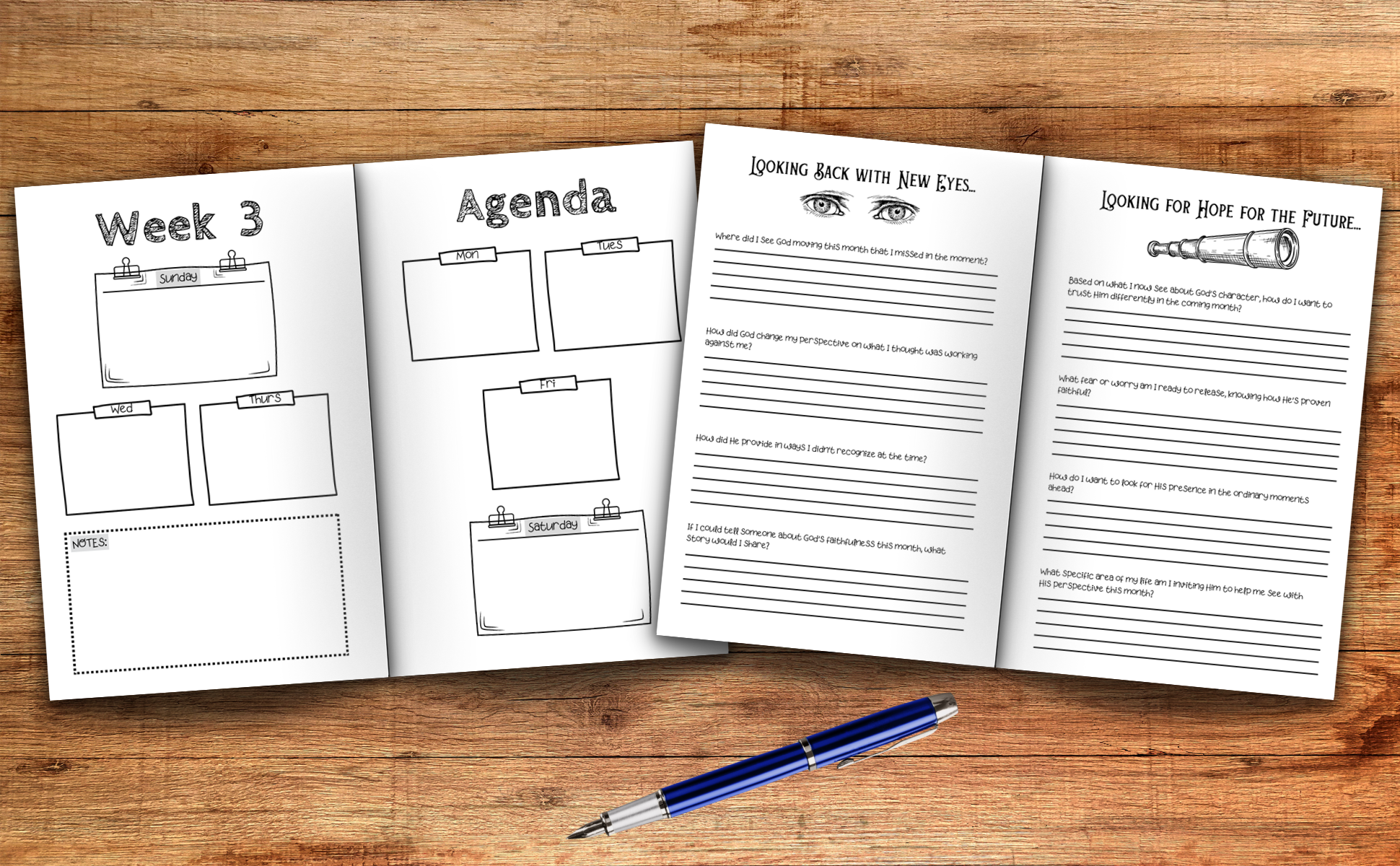 Every time you open this planner to check a date or plan your week, you’ll encounter Scripture that speaks into that season’s unique rhythms. The weekly pages give structure to your days. The reflection pages train your heart to perceive what your eyes have been missing.